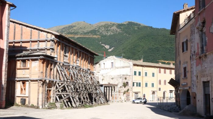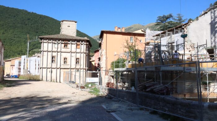 In un’accogliente pizzeria di Visso un gruppo di lavoratori cena e discorre in napoletano. Nel borgo nel maceratese, incastonato nella valle del fiume Nera nell’incantevole Parco nazionale dei Monti sibillini, lavorano nei cantieri privati che ristrutturano o costruiscono le case che le scosse di terremoto del 2016 (il 24 agosto prima, il 26 e 30 ottobre fino all’inizio del 2017 poi) avevano sbriciolato o reso inagibili. A confronto con il 2023 nel paese moderno a fine agosto 2025 le gru in attività e gli operai (senza casco almeno quelli fotografati in un cantiere) sono davvero numerosi e diverse case sono abitate. Pende una duplice domanda: come ricomporre la vita collettiva di comunità sparpagliate. E se lo spopolamento debba essere “irreversibile” come aveva scritto, e poi cancellato, il piano “Psnai” per le aree interne varato dal governo in primavera.