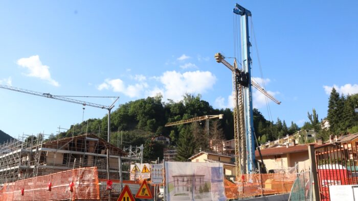 Cantieri in corso a Visso, fine agosto 2025. Foto Stefano Miliani