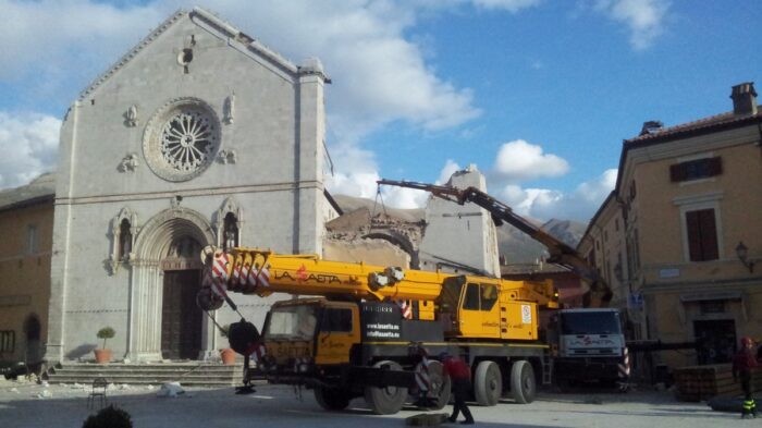 Sotto vi diamo conto dei pareri sulla ricostruzione di alcune cittadine e cittadini nursini incontrati a Norcia a fine agosto. Ha però la precedenza San Benedetto. La chiesa distrutta divenne un simbolo del terremoto nel Centro Italia: erano crollati il tetto, quasi interamente il Portico delle misure sul lato destro, metà del campanile, la facciata rimaneva in piedi isolata, la navata era un enorme ammasso di macerie. Un disastro.