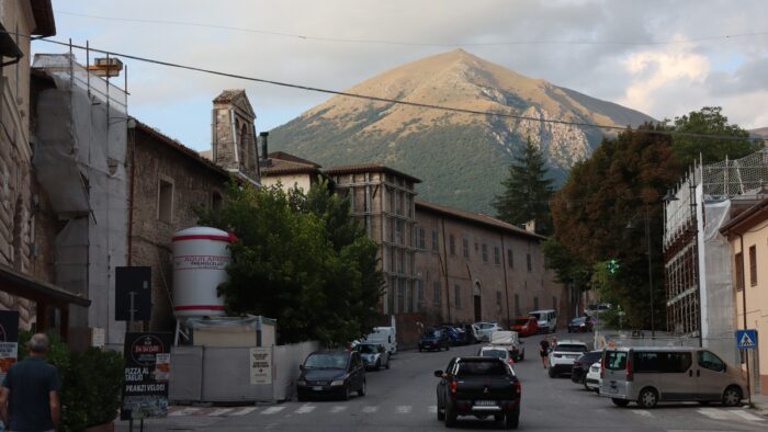 Scorcio del centro di Norcia a fine agosto 2025. Foto Stefano Miliani