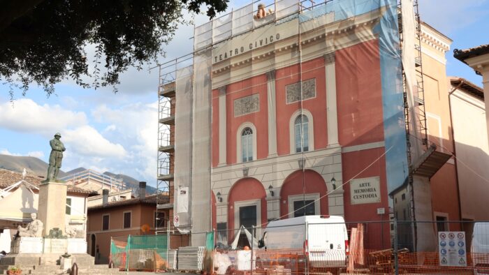 Il Teatro civico di Norcia a fine agosto 2025. Foto Stefano Miliani