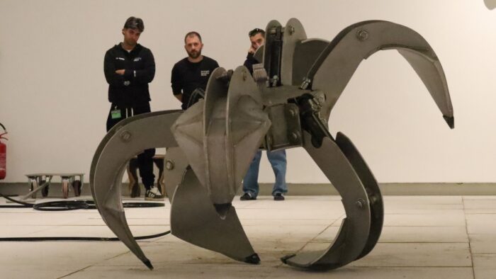 Sempre in tema di “mostruosità” (detto con affetto) “Hunger” di Arcangelo Bassolino non stupirà chi è abituato a vedere macchinari in azione alle mostre (alla Biennale capita): una sorta di artiglio in acciaio, forse di una ruspa, quando alza le “zampe” può ricordare un piccolo dinosauro, un insettone monco o un alieno e quando sbatte giù il muso-artiglio si fa notare per il gran fracasso. Poveri custodi.