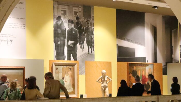 Delle oltre 1700 opere del 1935 Guadagnini ha scelto una quarantina di pezzi scartando quelle in lode del duce o del regime che all’epoca proliferavano. Se non abbiamo contato male nelle foto storiche a corredo Mussolini compare una volta soltanto. Una scelta per depotenziare eventuali revisionismi fascistoidi e restare nell’alveo dell’arte. Ricordando che quelli erano gli anni della dittatura, numerose opere eccelse appagano lo sguardo e lo spirito.