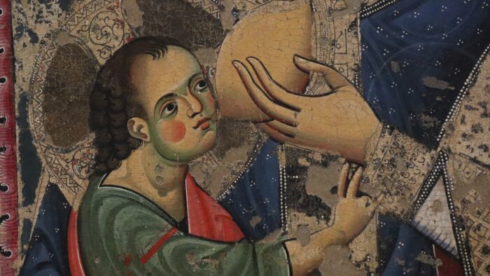 Il Medioevo e il Rinascimento i periodi d’oro delle arti abruzzesi. Il percorso è cronologico. Efficace il sistema di illuminazione, chiare le didascalie. Al primo piano in 14 sale ci si imbatte in autentici capolavori. Come lo stupendo trittico dipinto dal Maestro del Trittico di Beffi a inizio ‘400 accanto sua grande “Dormitio Virginis” acquistata dal Munda tre anni fa per arrivare a due San Sebastiano a fianco a fianco scolpiti tra fine ‘4000 e primo ’500 da Silvestro dell’Aquila e da Saturnino Gatti e al primo ‘500.