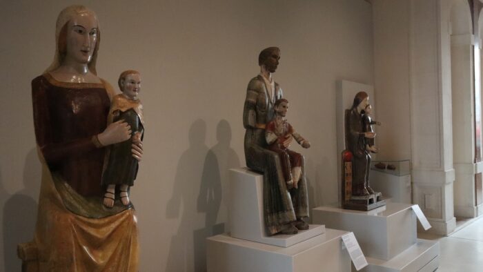 Tra altri pezzi magistrali si possono citare una Madonna con Bambino dipinto da un maestro abruzzese a metà ‘200, una scultura ad analogo tema di metà ‘300 assegnata al Maestro della Santa Caterina Gualino, le straordinarie pitture del Maestro di Campo di Giove (1370 circa). Punteggiano il tragitto le composte, austere, spesso struggenti Madonne con Bambino in legno scolpite dagli artisti abruzzesi, né quelle, dipinte su tavola, che allattano al seno in piccolo Gesù. Resta in deposito la bella Madonna di Castelli: una scelta comprensibile perché il borgo montano nel teramano rivuole la scultura che fu portata via da una chiesa del paese per restaurarla e salvarla dopo il terremoto del 2009. Nessuno contesta la restituzione, prima o poi avverrà.