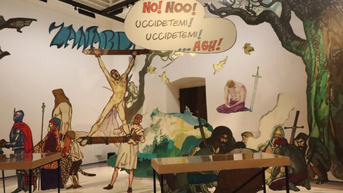 Che Pazienza, al Maxxi. Curata da Giulia Ferracci e Oscar Glioti, la mostra “Andrea Pazienza. La matematica del segno”, raccoglie oltre 300 opere di un artista del fumetto inquieto, inventivo, corrosivo. Nato a San Benedetto del Tronto nel 1956, formatosi a scuola in ambienti fecondi prima a Pescara e poi nella vivacissima Bologna al Dams (Discipline delle arti, musica e spettacolo), Pazienza, come dimostra questo percorso dai giorni di scuola aveva avuto talento nel disegno fin da piccolo. Ebbe un padre disegnatore e insegnanti che lo capirono. Ferracci e Glioti sanno raccontarlo. Come sanno raccontare la sua maestria tecnica di disegnatore, fumettista, pittore, irriverente, protagonista del fervore creativo “alternativo” e politico tra metà anni ’70 e anni ‘80.