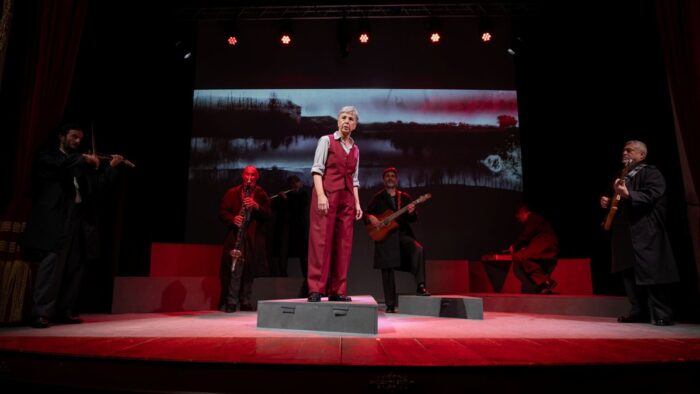 Esattamente. In più la regia fa agire i musicisti dell’Orchestra multietnica di Arezzo, compreso il bravissimo maestro che ha scritto le musiche Enrico Fink. I musicisti, e la musica, non sono d’accompagnamento, sono personaggi, sono di volta in volta il coro, gli agrari, i fascisti, le camicie nere, sono presenze molto molto forti. E rendono lo spettacolo non un teatro di narrazione: nella nostra modestia di saltimbanchi, siamo sicuri di aver fatto uno spettacolo, non una semplice lettura. Stefano è un drammaturgo notevole, da vent’anni faccio solo testi suoi, credo che questo sia il decimo messo in scena. Anche quando parla di cose lontane, come il caso Matteotti, o di migrazioni, racconta l’oggi.